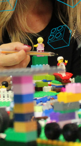 Jogo baseado no Lego Serious Play que utiliza construções com LEGO para estimular reflexão, criatividade e visão estratégica.