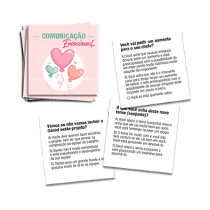 O Comunicação Emocional é um card game envolvente que treina duas habilidades fundamentais: expressar emoções com clareza e perceber sentimentos na fala do outro.