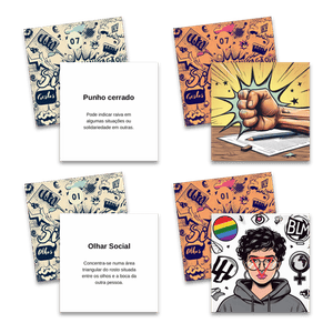 Jogo de cartas dinâmico, ideal para aquecer o grupo, com o objetivo de identificar e compreender as diversas formas de comunicação não verbal, estimulando a percepção e a empatia entre os participantes.